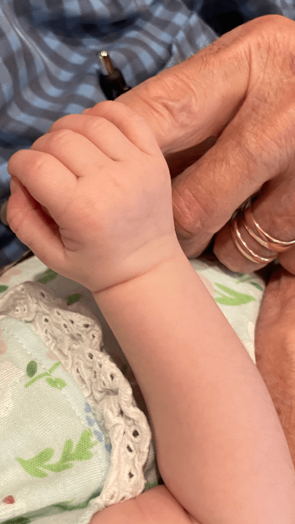 With Vera Faye’s instinctive grasp of my finger, I feel connected to one whose hand I can hold no longer but whose love continues to give life and hope.